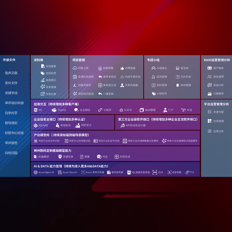 医疗器械产品上市前,,,,要熟悉严格与繁复评审标准,,,,整理分析监管机构指导文件中的海量信息。。。。企业急需一个智能化解决方案,,,提升知识管理效率,,,提高评审通过率,,,,以提升其市场竞争力。。
